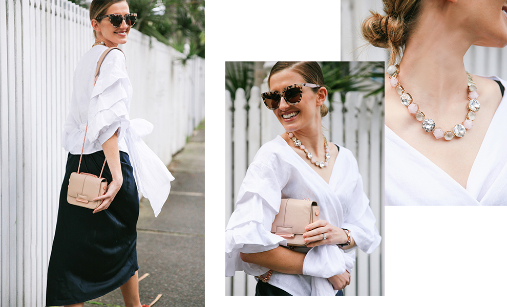 "Every girl should own a neutral bag that she can easily pair with numerous looks. This bag works for a simple day of errands, as well as for the transition to an evening event.