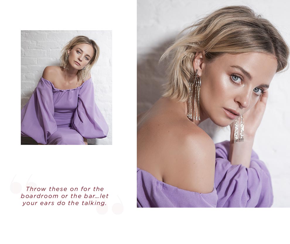 There is no one else we’d trust with the task of road-testing our new collection of striking drops, because when it comes to how (as well as where or when) to wear statement earrings, Nadia’s advice is worth taking.