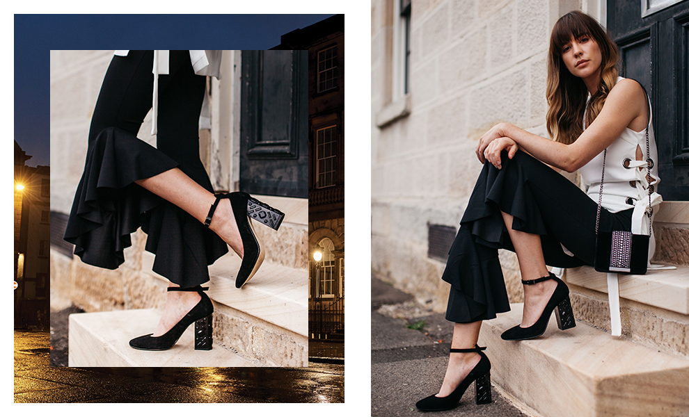 A jewelled pair of heels and a statement bag is an easy way to breath new life into classic looks."