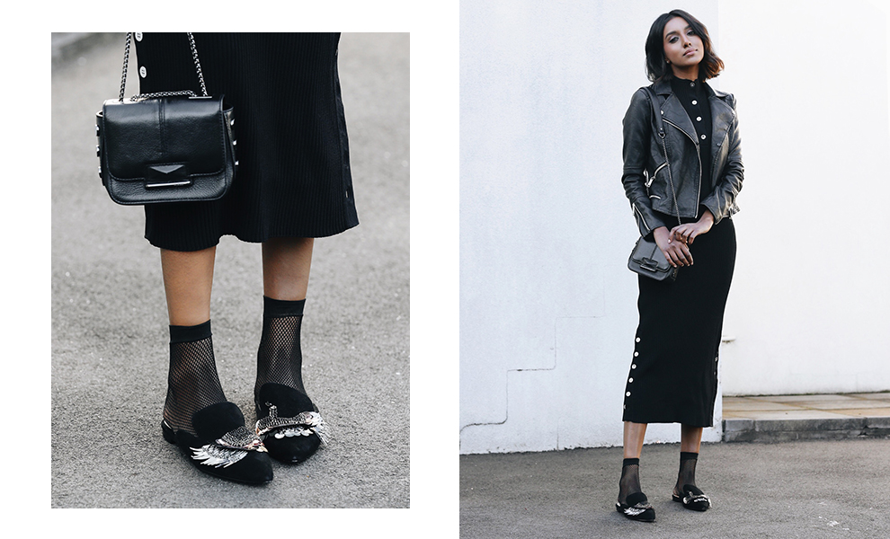 "As a stylist, my go-to footwear for running around all day is flats. My outfits are always about the smaller details coming together, so I love shoes with embellishments and sassy details to edge up my look.