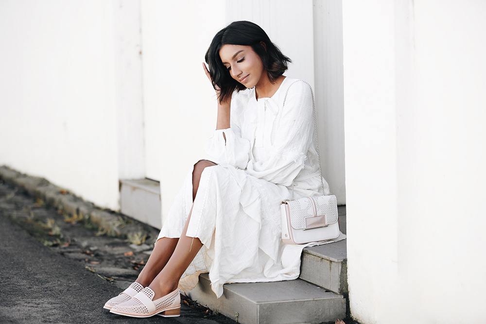 These loafers play into the more feminine side of my style. My tip is to keep the look tonal with apparel in tones of soft grey, camel and off-white."